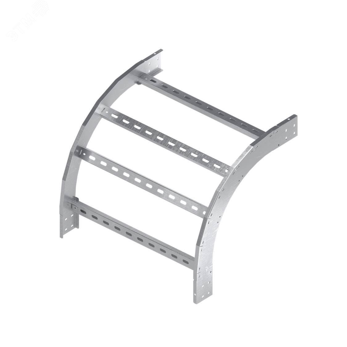 Вертикальный угол 90 градусов обеспечивает поворот трассы в вертикальной плоскости под прямым углом. Плавность поворота облегчает прокладку силового кабеля. Направление - внешний. Ширина - 500 мм, высота - 100 мм. Исполнение - 'Цинк-ламель'.