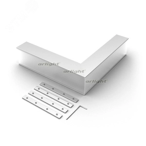Угол в сборе, для профиля SL-LINE-5035. Свечение наружу. В комплекте угол с экраном, соединители, винты, шестигранный ключ.