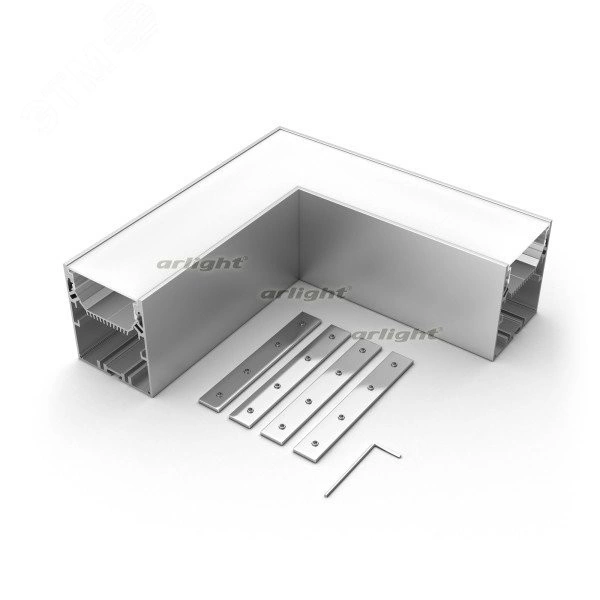 Угол в сборе, для профиля SL-LINE-6070. В комплекте угол с экраном, соединители, винты, шестигранный ключ.