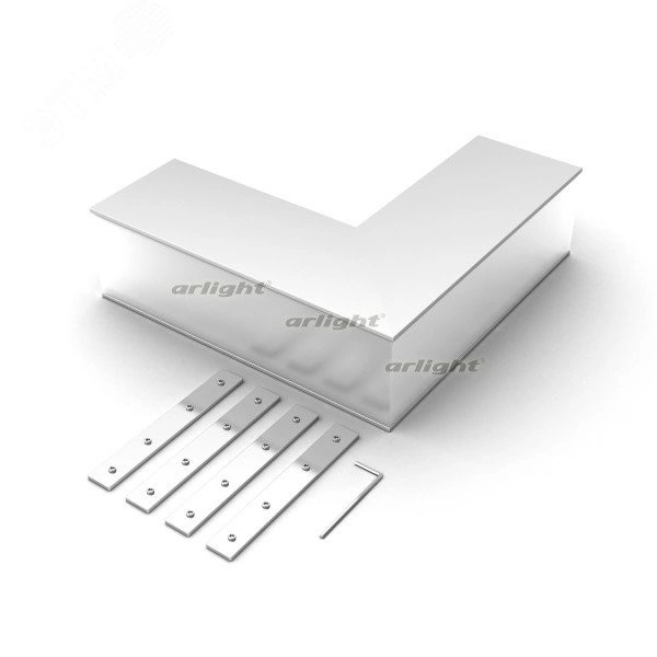 Угол в сборе, для профиля SL-LINE-6070. Свечение наружу. В комплекте угол с экраном, соединители, винты, шестигранный ключ.