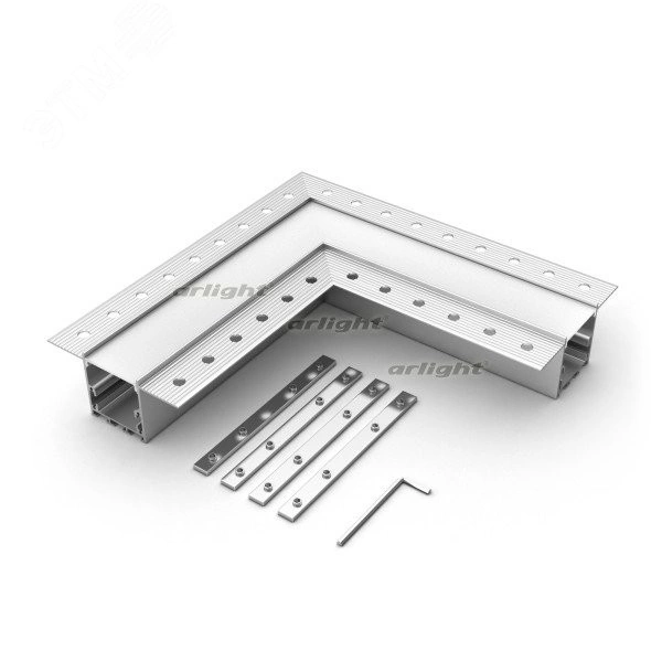 Угловой соединитель в сборе для профиля SL-LINIA32-FANTOM. В комплекте угол с экраном, соединители, винты, шестигранный ключ.