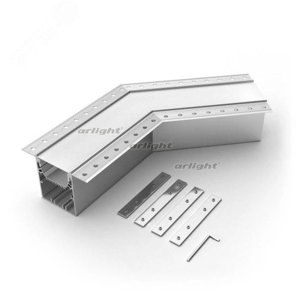 Угол в сборе, для профиля SL-LINIA55-FANTOM. Угол 135 градусов . В комплекте угол с экраном, соединители, винты, шестигранный ключ.