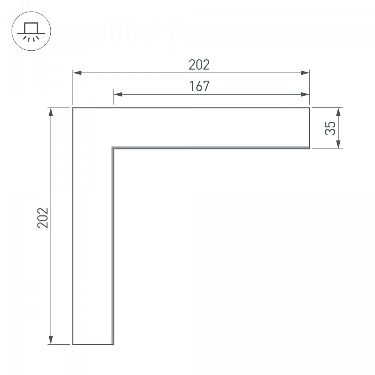 Угол в сборе, для профиля SL-LINIA65-F. Свечение внутрь. В комплекте угол с экраном, соединители, винты, шестигранный ключ.