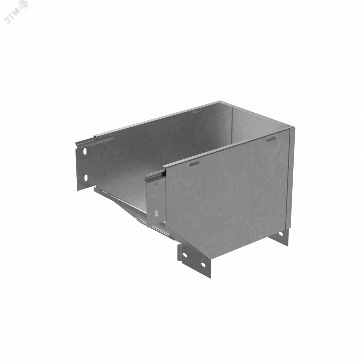Для изменения направления кабельной трассы при монтаже разработана специальная фасонная секция – угол вертикальный внешний правый с разворотом открытой части лотка вокруг своей оси на 90 градусов. Такой изгиб предотвращает повреждение кабельной трассы при её прокладке. Элемент рекомендовано применять c металлическим листовым лотком этой же серии шириной 400 мм и высотой борта 100 мм. Изделие выполнено из стали и оцинковано по методу Сендзимира. Предназначено для применения в местах предпочтительно с сухим климатом, внутри помещений и в слабоагрессивных средах, в соответствии с ГОСТ15150-69. Соединение между секциями происходит с использованием подходящих крепежных элементов. Для дополнительной защиты элемента кабельной трассы от попадания пыли и мусора используйте крышку для угла серии ''PLUS''.