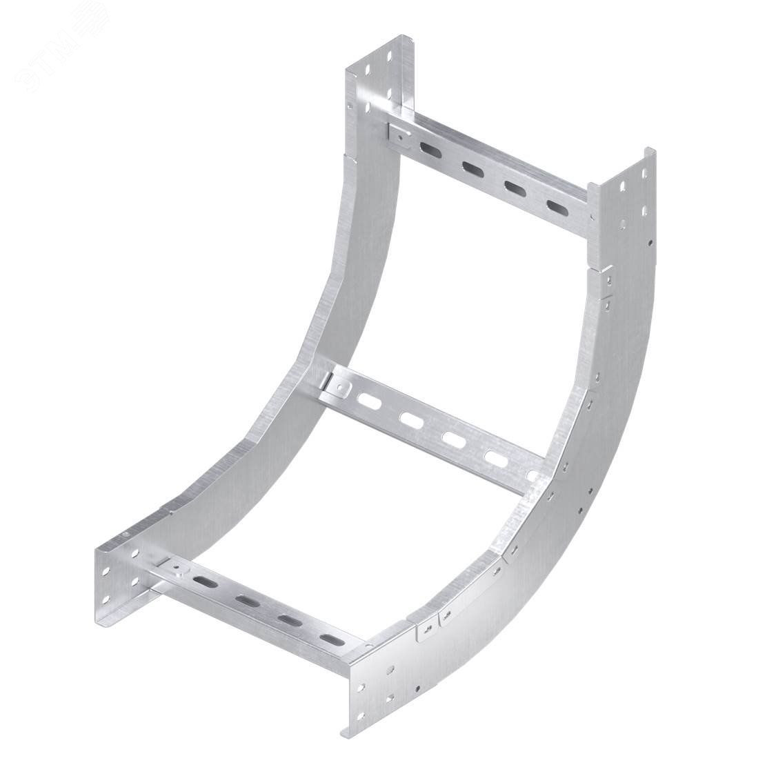 Угол вертикальный внутренний предназначен для организации поворота трассы на основе лестничных лотков с высотой борта 50 мм и шириной основания 200 мм вверх на 90 градусов. Радиус поворота угла - 600 мм. Аксессуар поставляется в комплекте с крепежными элементами и соединительными пластинами, необходимыми для монтажа. Изделие представлено в исполнении ‘Горячий цинк‘.