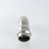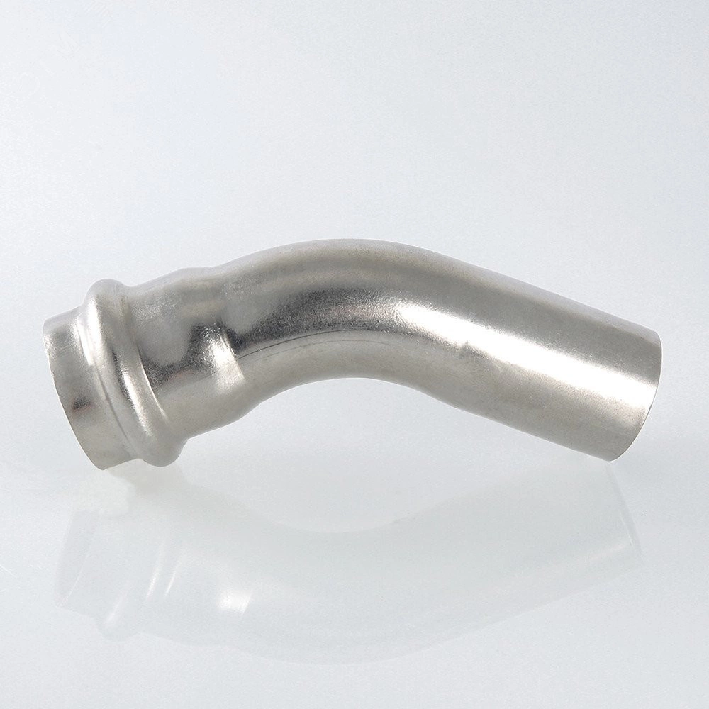 Однораструбный пресс-угольник 45 градусов из нержавеющей стали обеспечивает соединение тонкостенных стальных труб систем водоснабжения, отопления, иных инженерных и технологических установок с рабочей температурой до 120 градусов и давлением до 16 бар. Изделие изготовлено из стали AISI 304. Материал уплотнения - эластомер EPDM. Отдельно можно приобрести уплотнительные кольца из FPM (витон), в этом случае максимальная рабочая температура увеличивается до 140 градусов. Благодаря бесштуцерной конструкции соединитель обладает малым коэффициентом местного сопротивления - сужение канала практически отсутствует. Фитинг рассчитан на обжатие с помощью пресс-инструмента V-профиля.