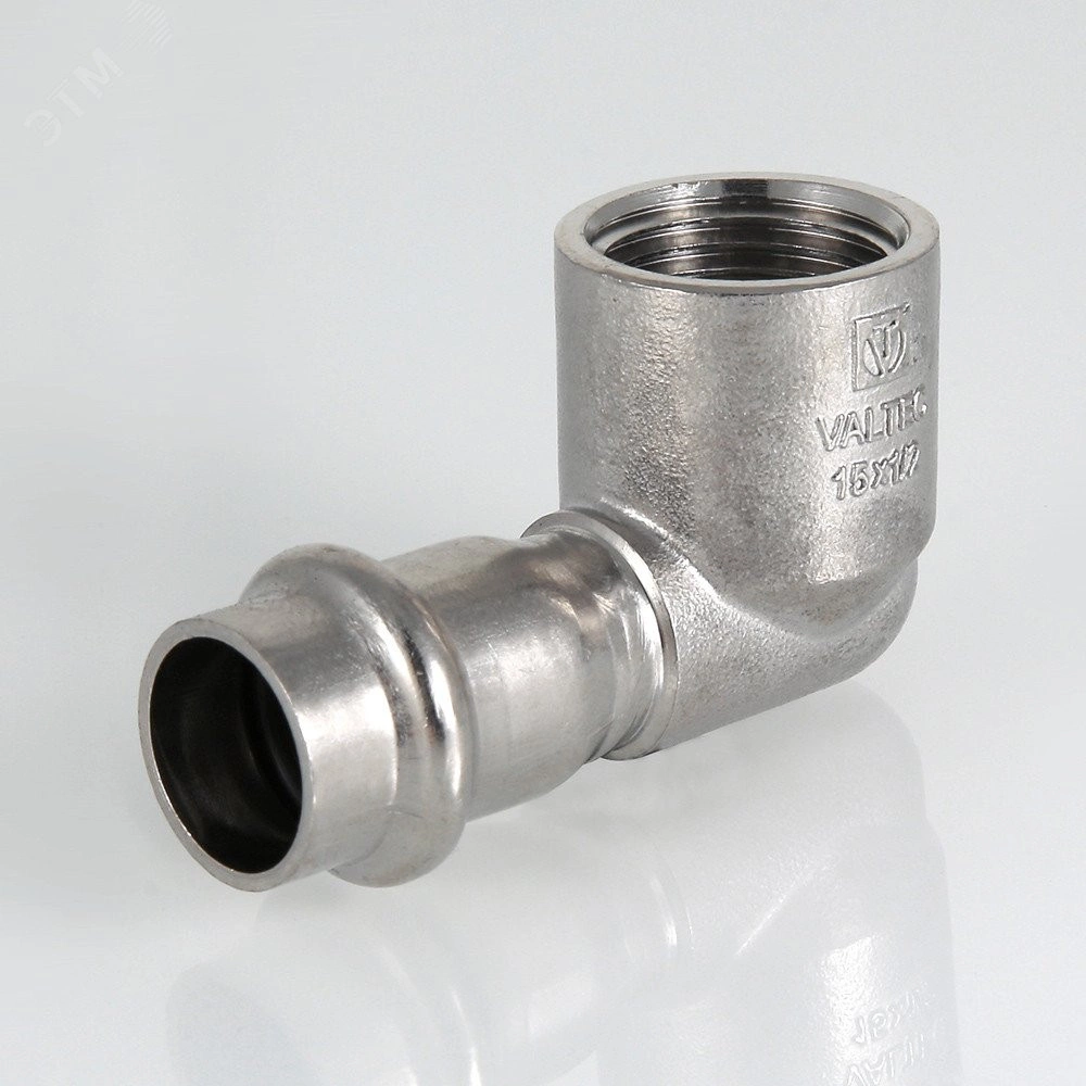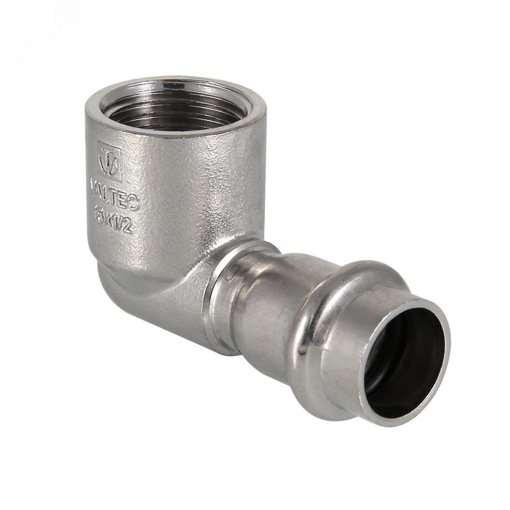 "Пресс-угольник из нержавеющей стали с внутренней резьбой обеспечивает соединение тонкостенной стальной трубы с резьбовым элементом монтируемой системы под углом 90 градусов. Область применения - трубопроводы водоснабжения, отопления, иные инженерные и технологические установки с рабочей температурой до 120 градусов и давлением до 16 бар.
