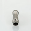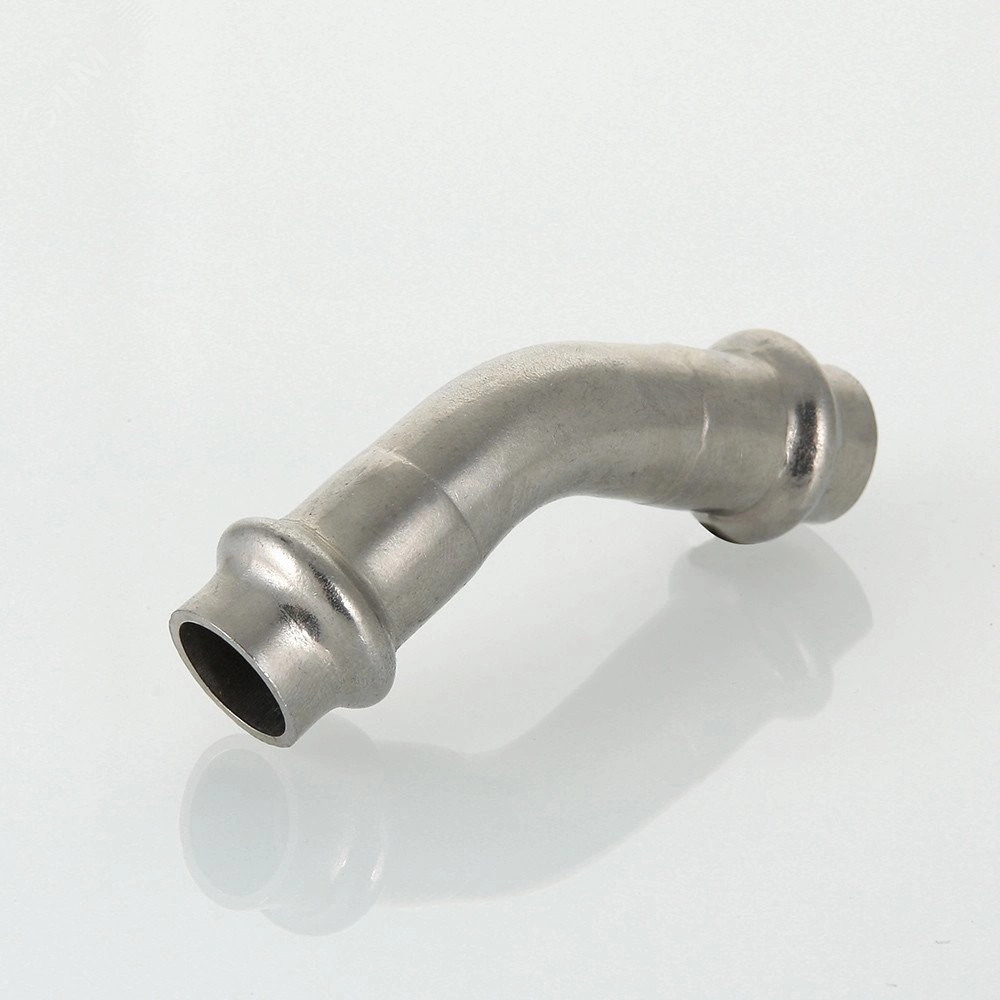 "Двухраструбный пресс-угольник 45 градусов из нержавеющей стали обеспечивает соединение тонкостенных стальных труб систем водоснабжения, отопления, иных инженерных и технологических установок с рабочей температурой до 120 градусов и давлением до 16 бар. Изделие изготовлено из стали AISI 304. Материал уплотнительных колец - эластомер EPDM. Отдельно можно приобрести уплотнительные кольца из FPM (витон), в этом случае максимальная рабочая температура увеличивается до 140 градусов.