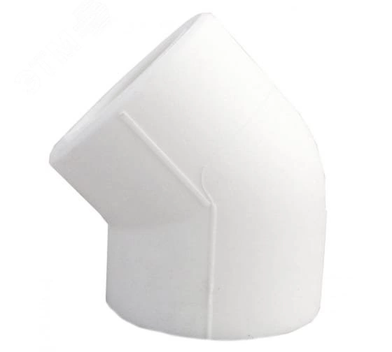 Полипропиленовый фитинг (соединительная деталь для трубопроводов) круглого сечения изготовлен из полипропилена PPR. Предназначен для поворота трубопровода на 45 градусов, соединяется пайкой. Производится методом литья под давлением. Гарантийный срок составляет десять лет со дня производства.