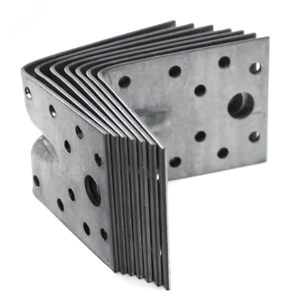 Крепежный уголок усиленный предназначен для соединения и фиксации элементов конструкции под углом 90 град. Ребро жесткости на сгибе позволяет использовать его при повышенных нагрузках: в процессе монтажа каркасных конструкций, для крепления деревянных конструкций к основанию из другого материала (бетон, кирпичная кладка и т.д.), для крепления бруса, межэтажных и чердачных балок перекрытия, прогонов и стоек.
