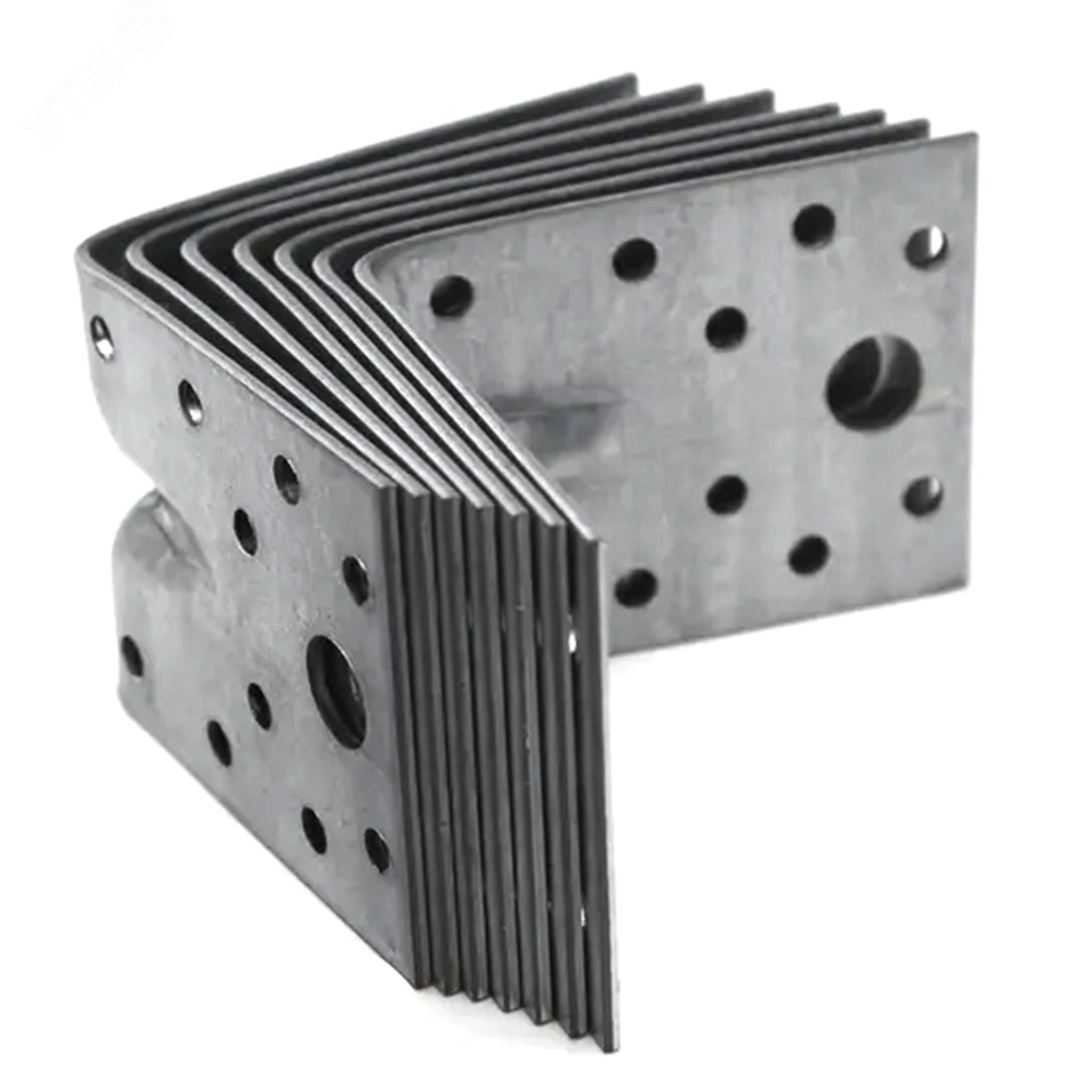 Уголок крепежный усиленный предназначен для соединения под углом 90 градусов балок, досок, брусьев, различных монтажных узлов с большой нагрузкой. Оснащен дополнительным ребром жесткости, отличается повышенной прочностью. Выполнен из оцинкованной стали, имеет отверстия разного размера.