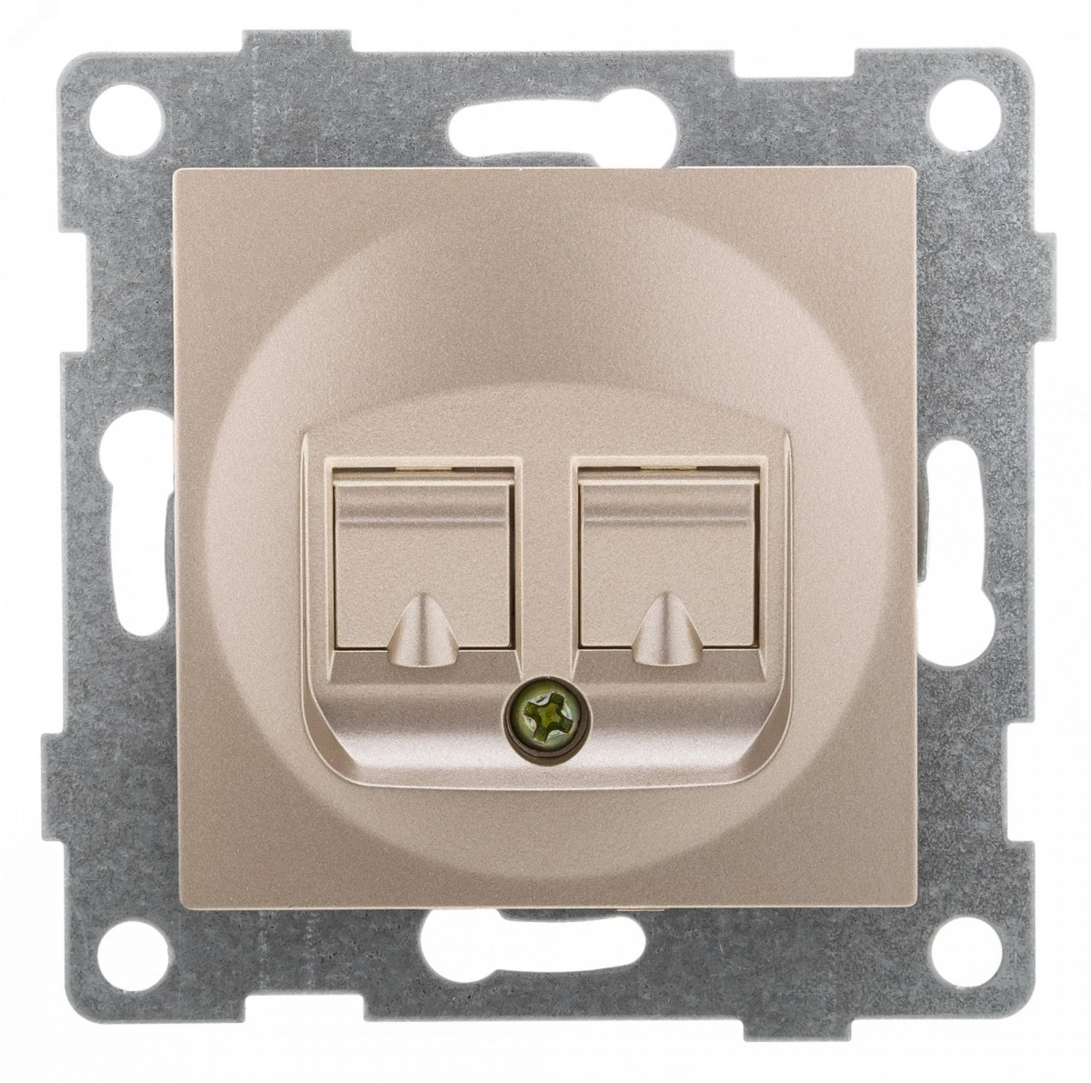 Полное описание: Ugra Розетка телефонная RJ12, двойная, скрытая установка. шампань