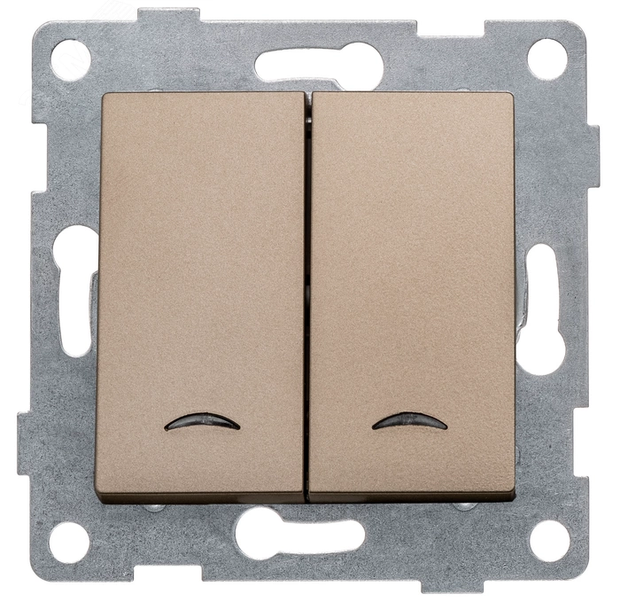 Полное описание: Ugra Выключатель двухклавишный со светоиндикацией, скрытая установка, 10А, 250В. шампань