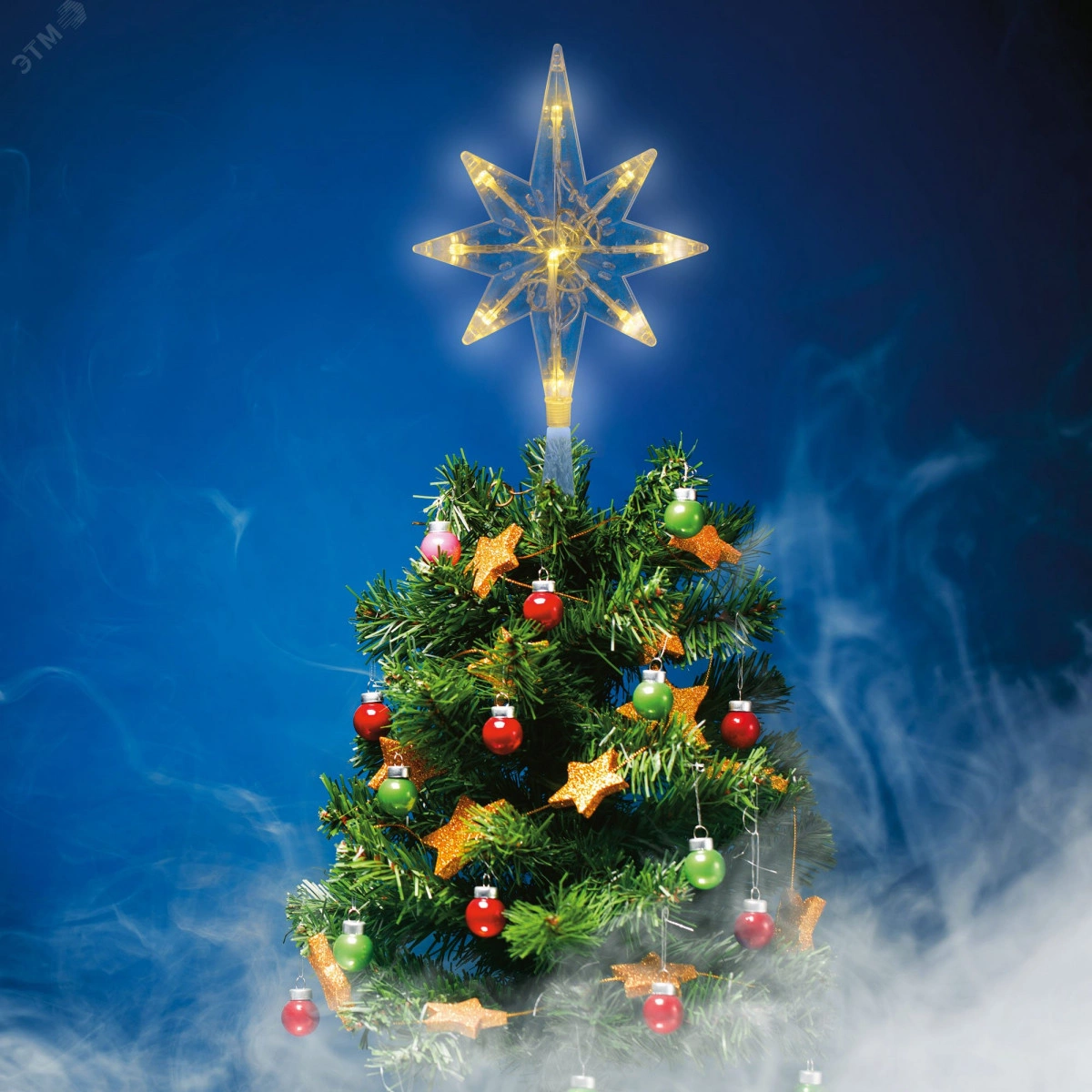 Украшение светодиодное для ёлки Звезда-5 на батарейках 2АА (не в/к) 15*25 см 9 светодиодов Теплый белый свет Прозрачный провод ULD-H1525-009/STB/2AA WARM WHITE STAR-5 TM Uniel
