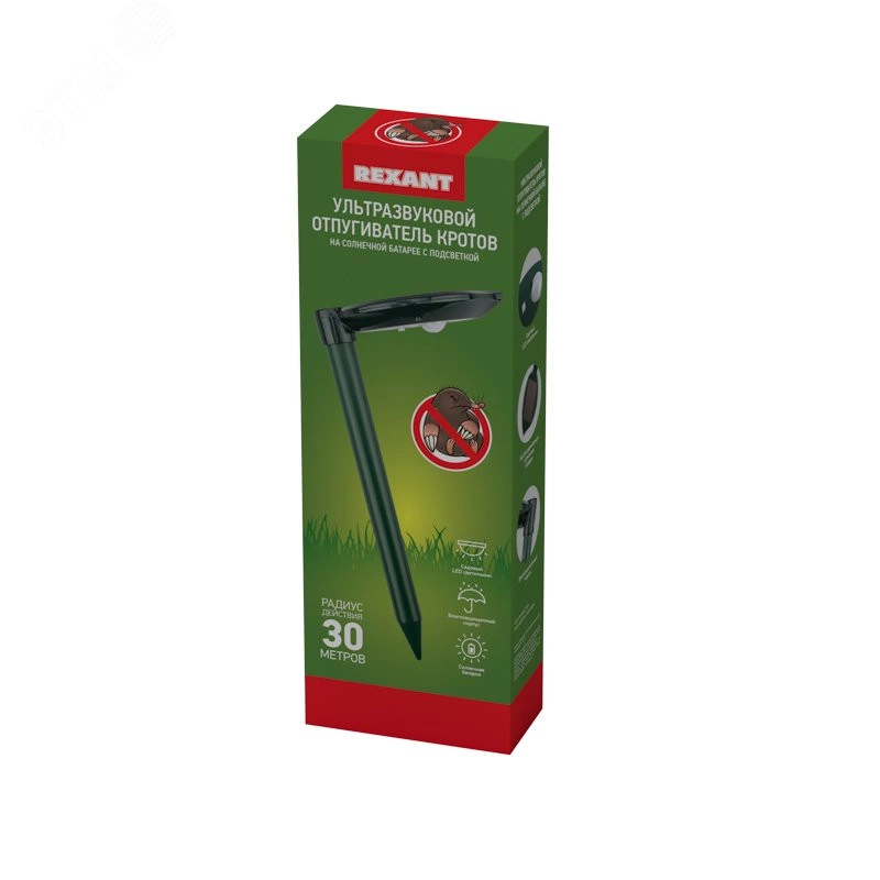 Ультразвуковой отпугиватель кротов R 30 м, на солнечной батарее, с подсветкой, REXANT