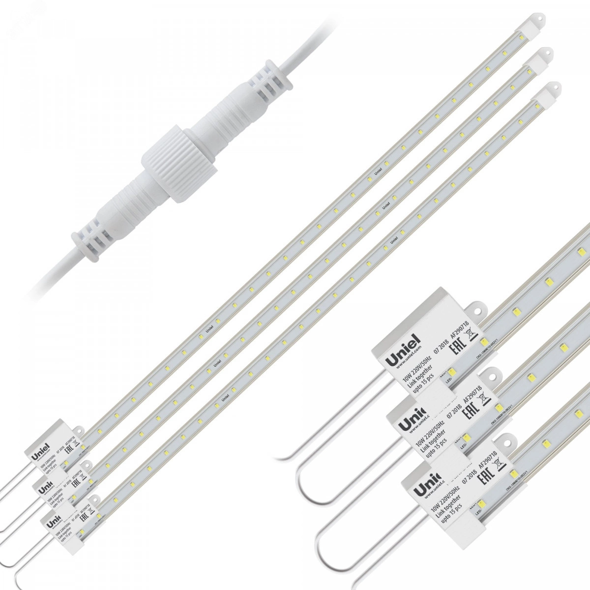ULY-P90-10W/SPFR/K IP65 AC220V CLEAR KIT03 Светильник для растений светодиодный линейный, 600мм. Спектр для фотосинтеза. В составе набора из 3-х штук. TM Uniel (ULY-P90-0003)