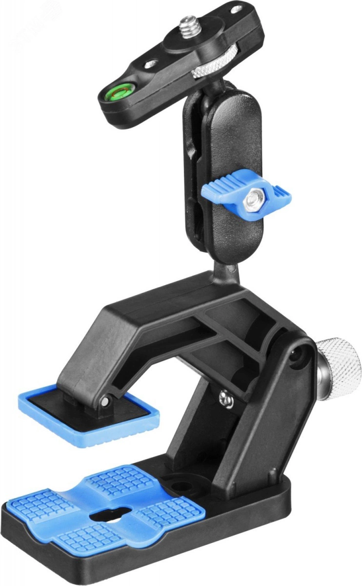 Профессиональный крепёжный элемент для лазерных устройств и цифровой техники с увеличенным диапазоном зажима. Оснащён поворотными шарнирами. Благодаря такой конструкции держатель крепится в разных местах и обеспечивает нужное направление лучей от прибора.