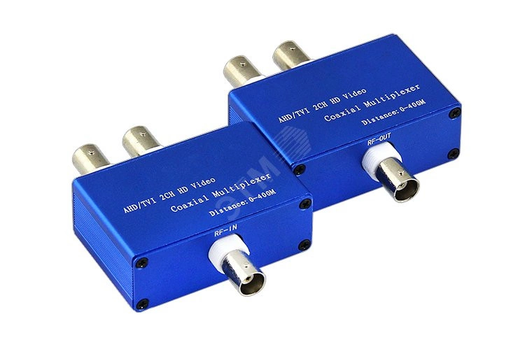 Уплотнитель видеосигнала по коаксиланому кабелю (комплект), на 2вх, до 400м, AHD/CVBS/CVI/TVI