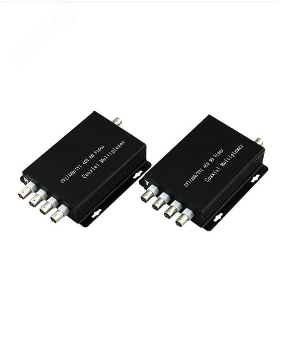 Уплотнитель видеосигнала по коаксиланому кабелю (комплект) на 4вх, до 100м, AHD/CVBS/CVI/TVI,