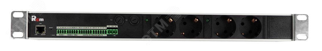 Блоки силовых розеток с контроллером Rem предназначены для удаленного мониторинга и управления оборудованием охранно-пожарной сигнализации, поддержания микроклимата, распределения электропитания в телекоммуникационных стойках, серверных комнатах и центрах обработки данных (ЦОД). Управляемый блок силовых розеток с мониторингом имеет 4 порта стандарта Schuko (две управляемых группы), выполнен в анодированном алюминиевом корпусе. Вход кабеля питания - клеммная колодка. Кабель питания в комплект поставки не входит. Совместим со всеми линейками 19'' монтажного оборудования. Поставляется в индивидуальной упаковке с комплектом крепежа. Выполнен в системе несущих конструкций 482.6 мм по ГОСТ 28601.2 (19-дюймовые конструктивы по МЭК 297). Степень защиты IP20, в составе блока два предохранителя 15А. Номинальный ток нагрузки 32А.