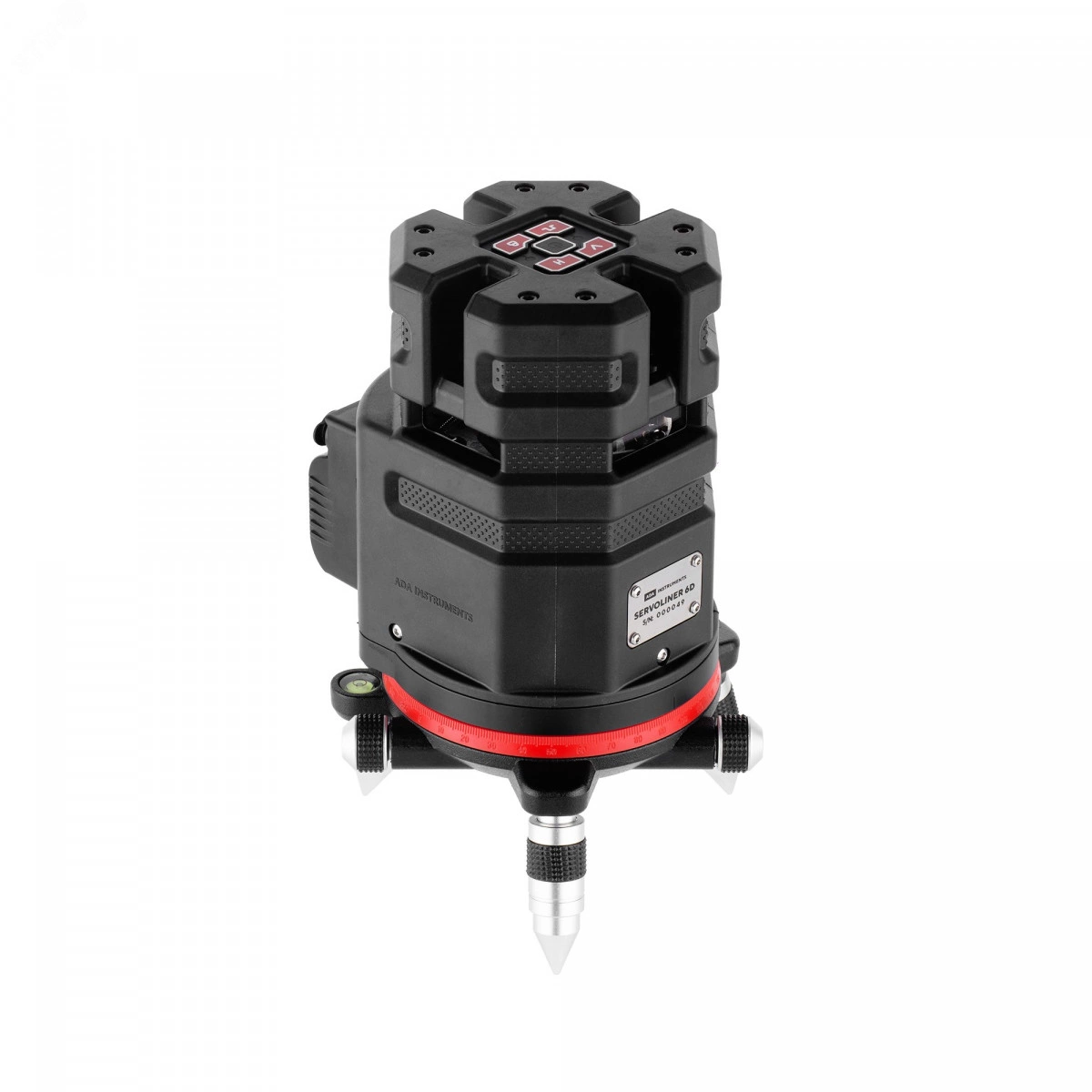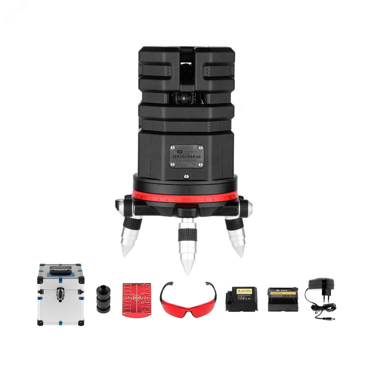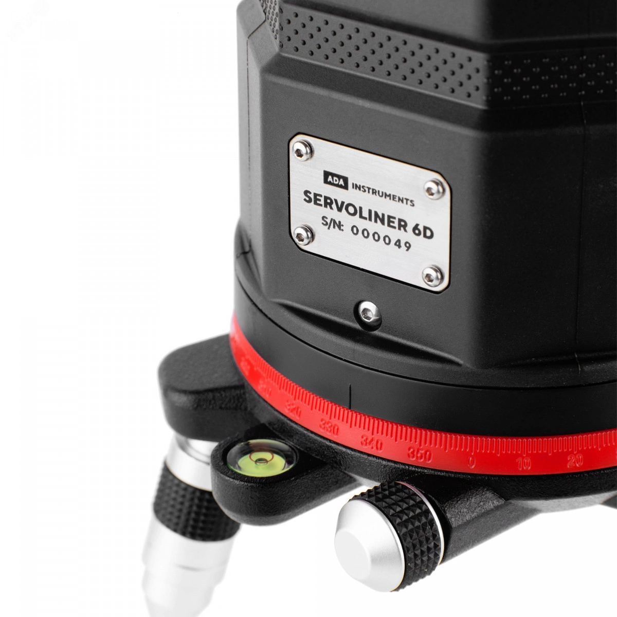 ADA 6D Servoliner – профессиональный лазерный уровень для использования в строительстве и ремонте. ADA 6D Servoliner прибор с поворотным основанием и комбинированной разверткой лазерных лучей - круговая горизонтальная линия 360 градусов, лазерный отвес (точка), плюс перпендикулярные вертикальные линии. Четкая, горизонтальная, круговая лазерная линия 360 градусов. Горизонтальная линия проецируется по кругу (на 360 градусов без прерывания), по всему периметру. Лазерная точка на горизонтальной линии позволит произвести разметку на большом расстоянии когда линию не видно. Все лазерные линии (вертикальные и горизонтальная) пересекаются между собой под углом 90 градусов. Лазерный отвес поможет точно установить ADA 6D Servoliner GREEN на начальную точку на полу. Пересечение вертикальных линий на потолке дает возможность перенести точку отвеса, 'на полу', строго вертикально вверх, 'на потолок', с высокой точностью.