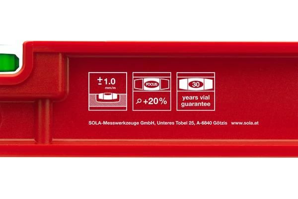 Полное описание: Уровень пластиковый PF 80 L=80см 2 глазка точн. 1.00мм/м SOLA 01413101
