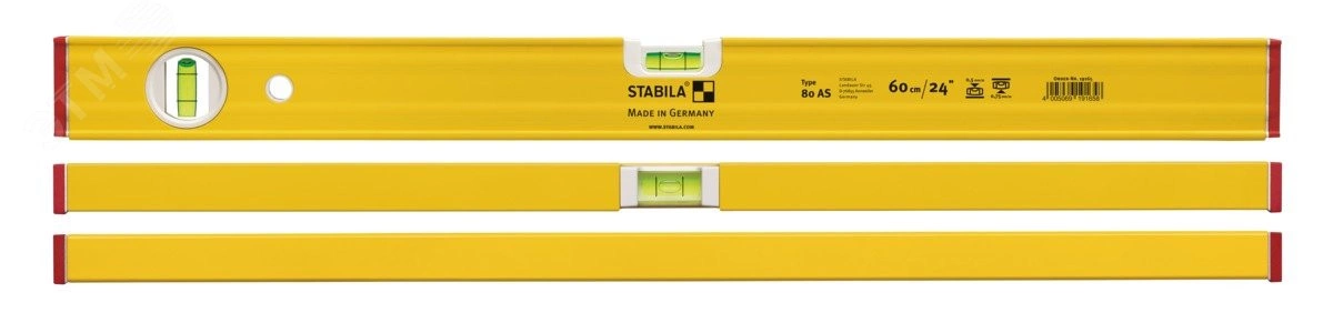 Серия 80 AS и Тип 80 AS-2 - Отлично подходит для использования в садовом и ландшафтном строительстве, в работе с железобетонными конструкциями, а также для выполнения плотничных, столярных и плиточных работ. Тип 80 AS-2 оснащен дополнительной вертикальной пузырьковой камерой и позволяет быстро снимать показания в любом положении. Stabila серии 80 AS - Узкий, прочный и удобный профиль для любых измерительных работ Прямоугольный алюминиевый профиль, усиленный ребрами жесткости, которые обеспечивают высокую прочность изделия и надежный захват рукой при работе. Уровень с двумя измерительными поверхностями для точных измерений в любом положении. Защита чувствительных измерительных поверхностей с помощью специального покрытия. Легкая очистка поверхности благодаря электростатическому порошковому покрытию. Пластиковые колпачки защищают профиль при ударах.