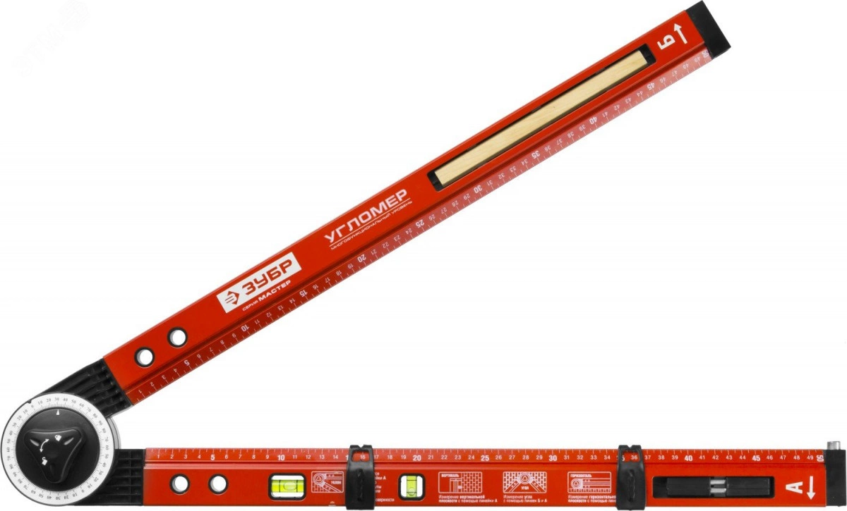 Уровень-угломер ''Мастер'' складной, 2 ампулы (1 поворотная), точность 1мм/м, 500мм