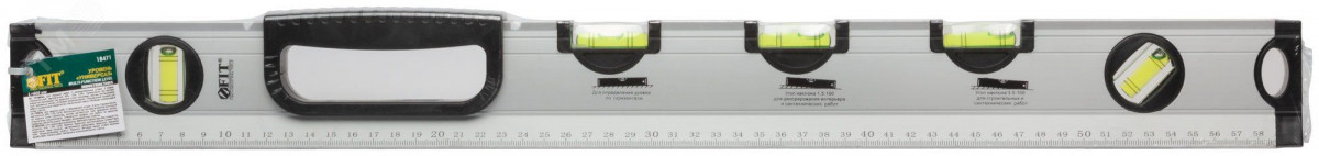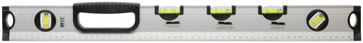 Строительный уровень ''Универсал'' FIT IT с 5 глазками предназначен для определения соответствия поверхностей горизонтальным и вертикальным плоскостям, а также для измерения угловых отклонений. Применяется в работах с поверхностями с заданным углом наклона, например при монтаже сантехнических труб, когда нужен маленький угол наклона. Встроенная пластиковая рукоятка обеспечивает удобное удержание инструмента. Уровень может использоваться в качестве линейки за счет нанесенной шкалы. Корпус из алюминия сочетает в себе легкость и прочность конструкции.