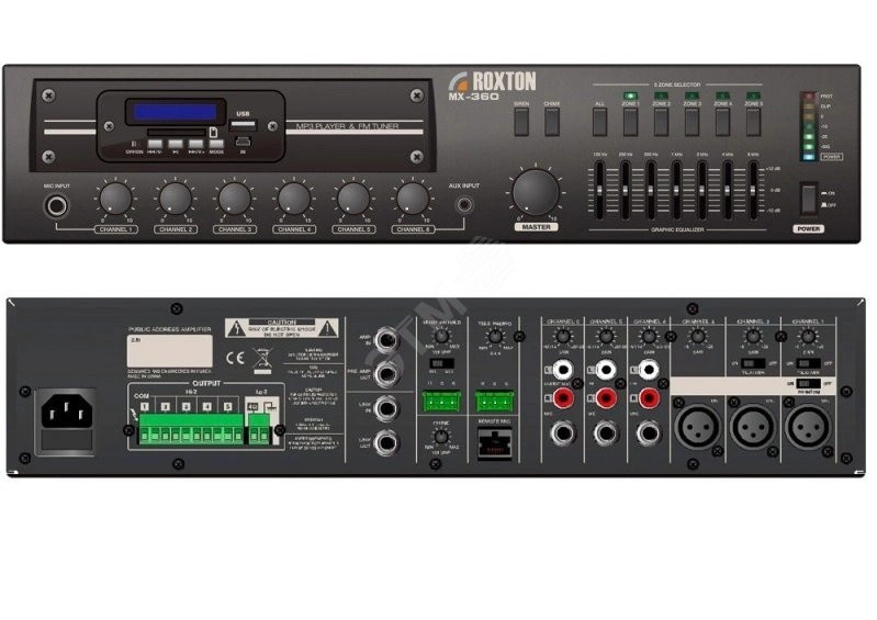 МР3-плеер-USB-FM-тюнер-усилитель 120Вт, 3 микр/2 лин входа, ИК-пульт ДУ, 6 зон