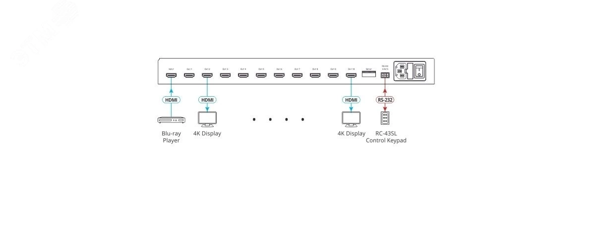 Усилитель-распределитель HDMI 1:10, 4K60 4:4:4, HDMI 2.0, HDR10, HDCP 2.2, Deep Color