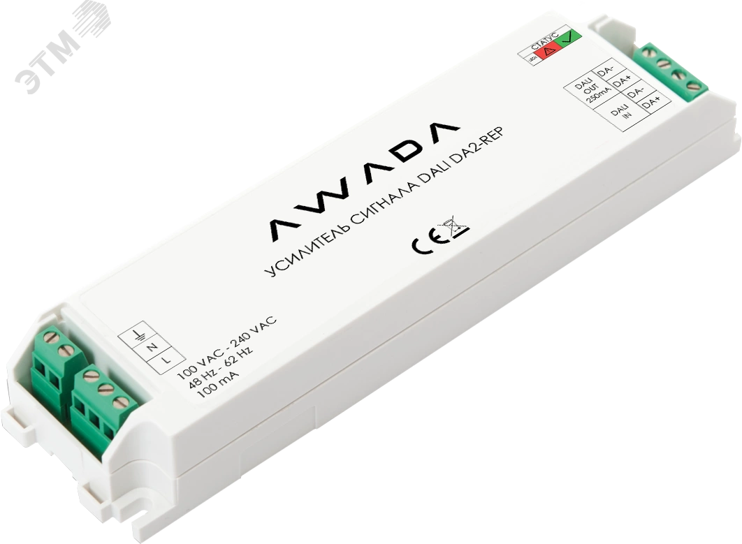 Усилитель сигнала DALI DA-REP является специализированным устройством, позволяющим объединить два сегмента шины DALI. Объединенная шина является общим информационным пространством, прозрачный режим работы прибора незаметен для других устройств.