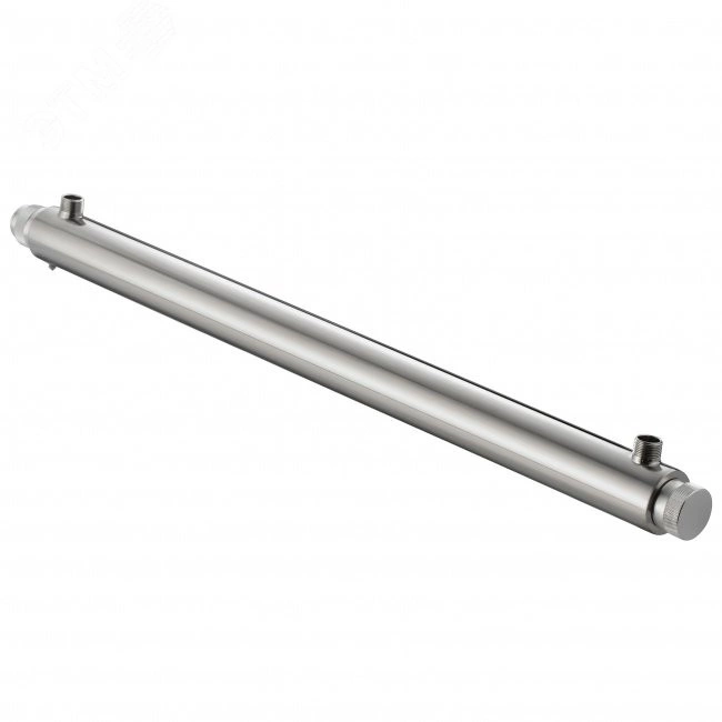Установки обработки воды ультрафиолетом применяются в случаях, когда необходимо уничтожить или предотвратить размножение патогенной микрофлоры – дезинфицировать воду от бактерий, вирусов, плесени и водорослей. Источником ультрафиолетового излучения служит ультрафиолетовая лампа, устанавливаемая внутри установки герметично, которая стерилизует и обеззараживает воду. Обеззараживание воды нашло широкое применение в подготовке питьевой воды, пищевой промышленности, медицине, в фармацевтическом производстве. Локальные установки обеззараживания используются в конечных точках разбора питьевой воды. 12 gpm, 2,7 м.куб/час.