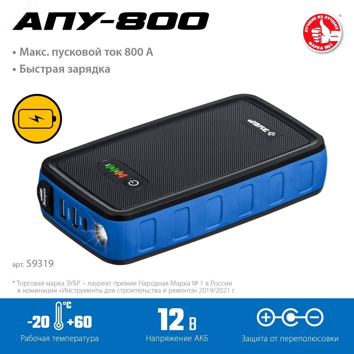 Устройство аккумуляторное пусковое: 12В, макс. 800А. АПУ-800