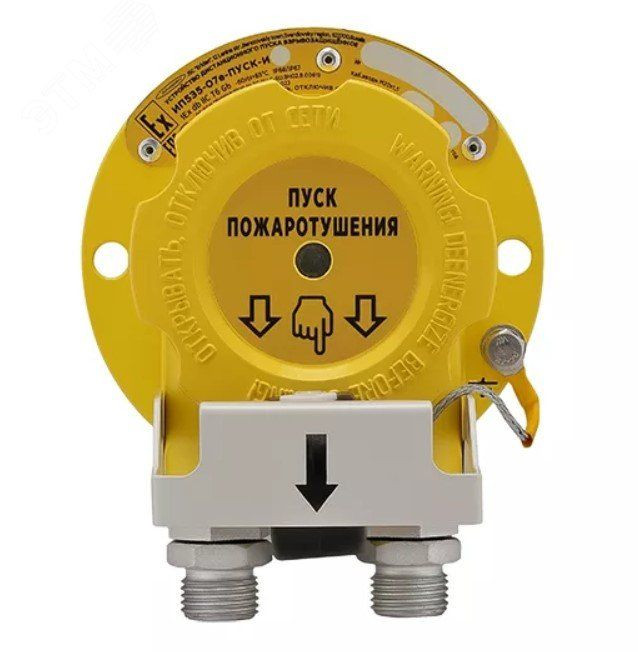 Устройство дистанционного пуска взрывозащищенное ИП535-07е-ПУСК-И2/ПУСК ПОЖАРОТУШЕНИЯ (Ж), КВБ 17,ОЭ, ТУ 4371-006-43082497-04 предназначено для ручного запуска систем противопожарной защиты во взрывоопасной зоне.