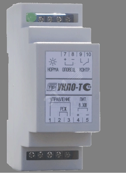 Устройство контроля линии оповещения - УКЛО-Т, применяется в составе систем оповещения объекта для контроля целостности одной линии оповещения. Устройство может использоваться также для увеличения нагрузочной способности прибора управления при управлении несколькими устройствами оповещения. УКЛО-Т осуществляет контроль линии с нормально-включенными устройствами оповещения типа табло и транспарантов. Контроль осуществляется как током обратной полярности, так и по величине прямого тока потребления оповещателей.