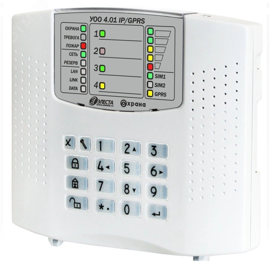 Предназначено для охраны объектов широкого профиля (от жилых помещений до объектов корпоративных клиентов) путем контроля охранных извещателей и передачи сообщений на пункт централизованной охраны (ПЦО). Прибор контролирует состояние охранных зон, по изменению сопротивления шлейфов сигнализации (ШС). Прибор изготовлен в пластмассовом корпусе, на его передней панели расположены кнопки управления панель индикации.