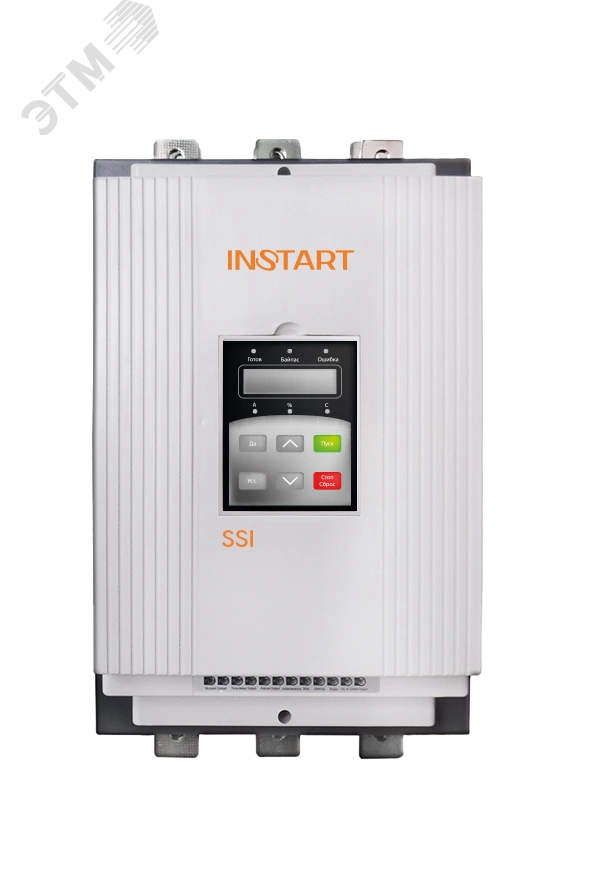 Устройства плавного пуска серии SSI предназначены для плавного запуска асинхронных короткозамкнутых электродвигателей путем постепенного повышения напряжения на статоре двигателя. Снабжены силовыми тиристорными модулями в каждой фазе, включенными по встречно – параллельной схеме, что обеспечивает управление всеми тремя фазами на протяжении полного периода пуска и останова двигателя. Силовая часть устройства выполнена на тиристорах, система управления – цифровая, микропроцессорная. Устройства плавного пуска INSTART применяются в различных областях промышленности, везде, где необходим контролируемый пуск и останов двигателя. Данные устройства могут использоваться как в легких, так и в тяжелых условиях пуска.