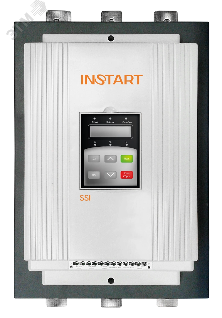 Устройства плавного пуска серии SSI предназначены для плавного запуска асинхронных короткозамкнутых электродвигателей путем постепенного повышения напряжения на статоре двигателя. Снабжены силовыми тиристорными модулями в каждой фазе, включенными по встречно – параллельной схеме, что обеспечивает управление всеми тремя фазами на протяжении полного периода пуска и останова двигателя. Силовая часть устройства выполнена на тиристорах, система управления – цифровая, микропроцессорная. Устройства плавного пуска INSTART применяются в различных областях промышленности, везде, где необходим контролируемый пуск и останов двигателя. Данные устройства могут использоваться как в легких, так и в тяжелых условиях пуска.