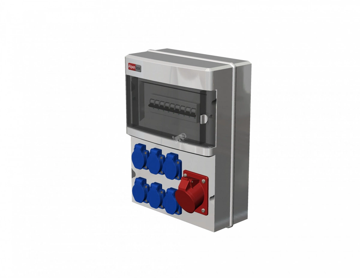 Устройство распределительное AlpenBox настенное пластик IP44 40A корпус 295х400х148 серый