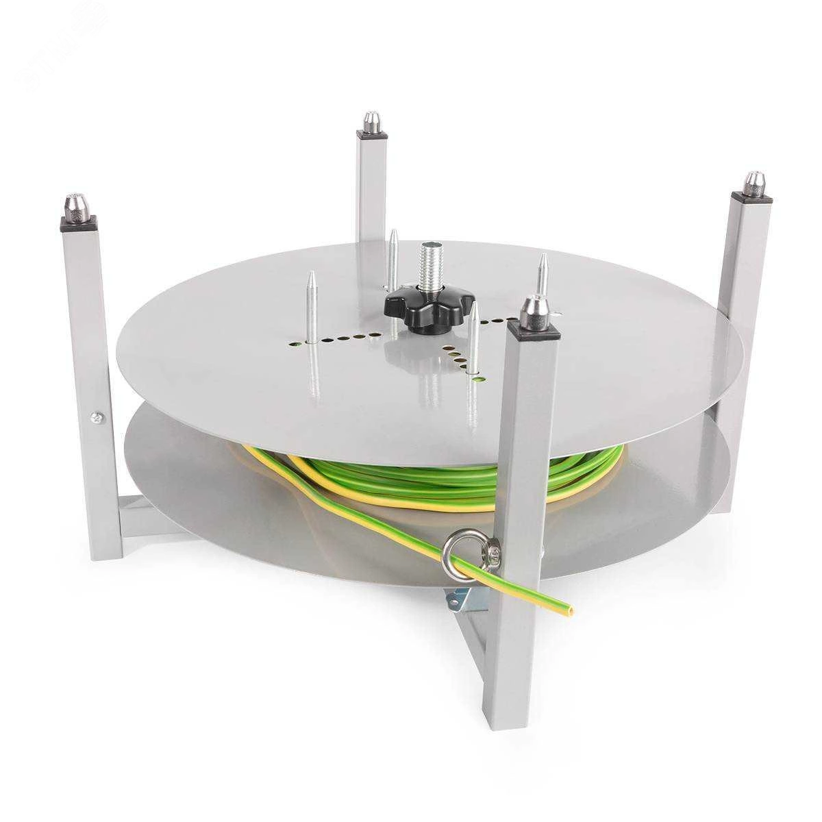 Устройство предназначено для размотки гибких проводов и термоусадочных кембриков из бухт. Диаметр поворотного стола: 380 мм.Максимальные габариты устанавливаемой бухты