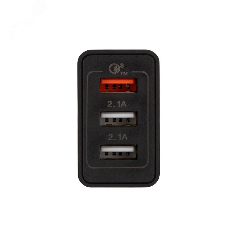 Устройство сетевое зарядное-переходник 3xUSB адаптер, 30W черное,