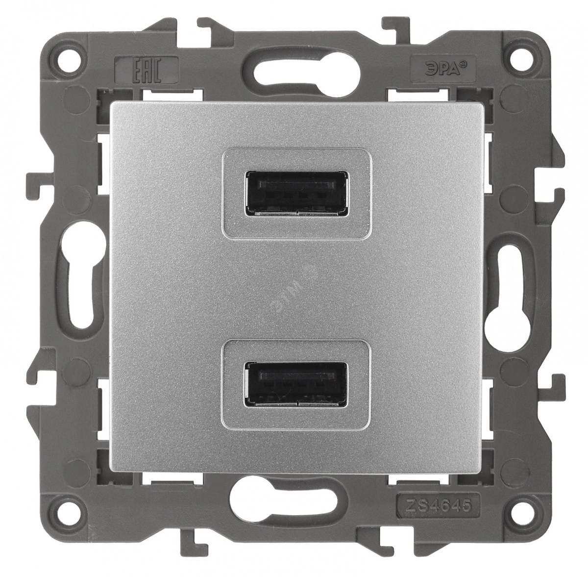 Устройство зарядное USB серии Эра Elegance цвет алюминий 14-4110-03. Номинальные характеристики - оснащено автоматическими клеммами для надежной фиксации жил кабеля в механизме. Рамки приобретаются отдельно.