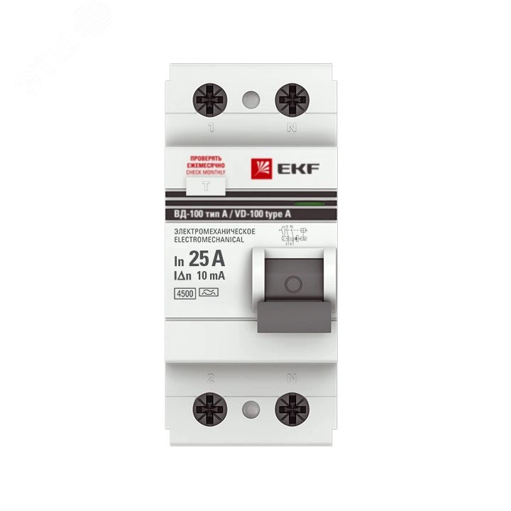 Устройство Защитного Отключения ВД-100 2P 25А/10мА (эл-мех, тип А) PROxima