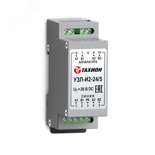 Устройство защиты интерфейсов с подачей питания УЗЛ-И2-24/5 с двумя каналами предназначено для защиты от импульсных перенапряжений (грозовых, электростатических разрядов и др.) оборудования промышленной автоматизации, диспетчеризации, систем безопасности, использующих 2х проводные линии интерфейса RS-485, RS-422, M-bus, CAN и их разновидностей, в пределах 2/3 зон молниезащиты (в соответствии с МЭК 61312-1). Устройство обеспечивает передачу питания 24 В DC по сигнальным парам с величиной тока до 5 А.