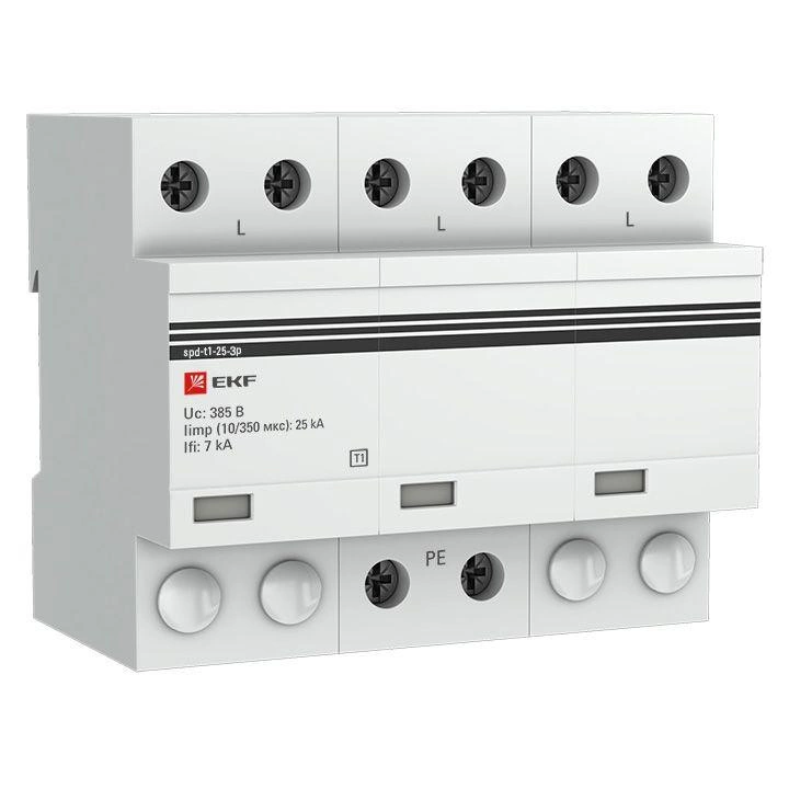 Устройство защиты от импульсных перенапряжений УЗИП Тип 1 Iimp 25кА (10/350мкс) 3P EKF spd-t1-25-3p
