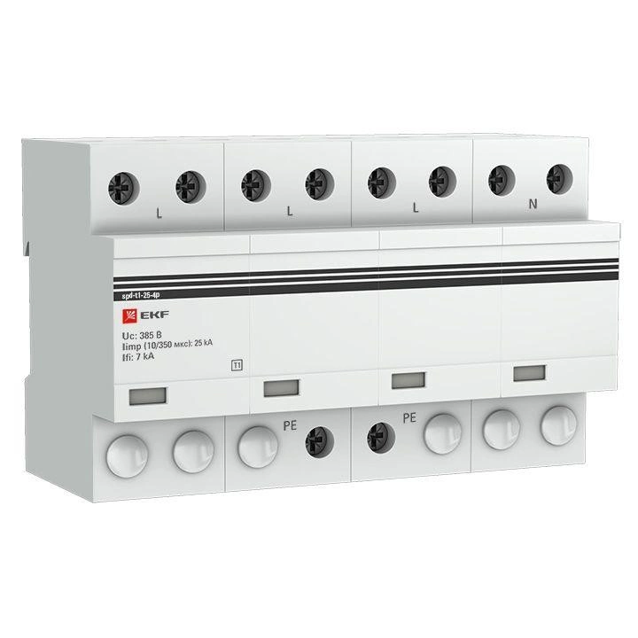 Устройство защиты от импульсных перенапряжений УЗИП Тип 1 Iimp 25кА (10/350мкс) 4P EKF spd-t1-25-4p