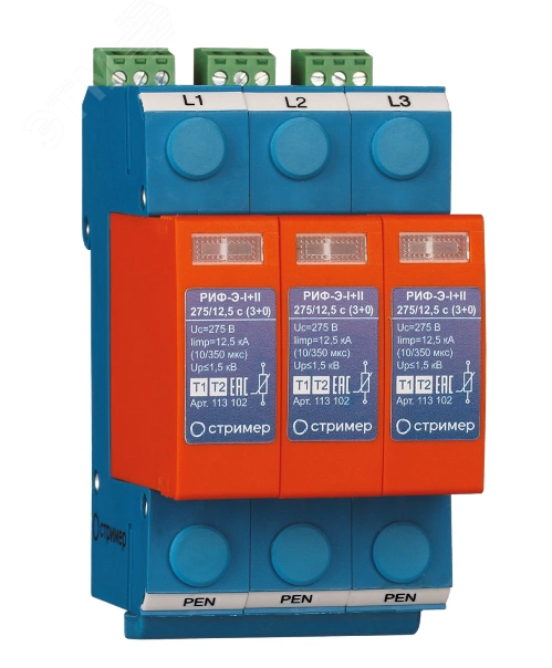 Устройство защиты от импульсных перенапряжений РИФ-Э-I+II 275/12,5 с (3+0) (113 102)