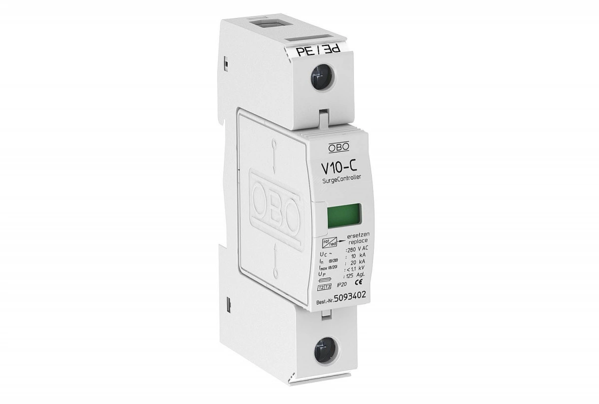 Устройство для защиты от перенапряжений - разрядник типа 2+3: для защиты от перенапряжений и уравнивания потенциалов согласно VDE 0100-443 (IEC 60364-4-44), токоотводная способность до 20 кА (8/20) на полюс, штекерный разрядник с динамическим предохранителем и оптической индикацией функций, ,с мощным ,варистором, ,основание с многофункциональными соединительными клеммами  , Применение: для уравнивания потенциалов и защиты устройств в главных и вспомогательных корпусах распределительных щитов.