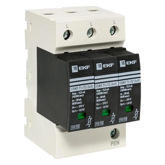 Устройство защиты от импульсных перенапряжений Т1+Т2; Iimp-12.5kA; In-20kA; Uc-275В; 3+0 PROxima EKF OV12-3-503